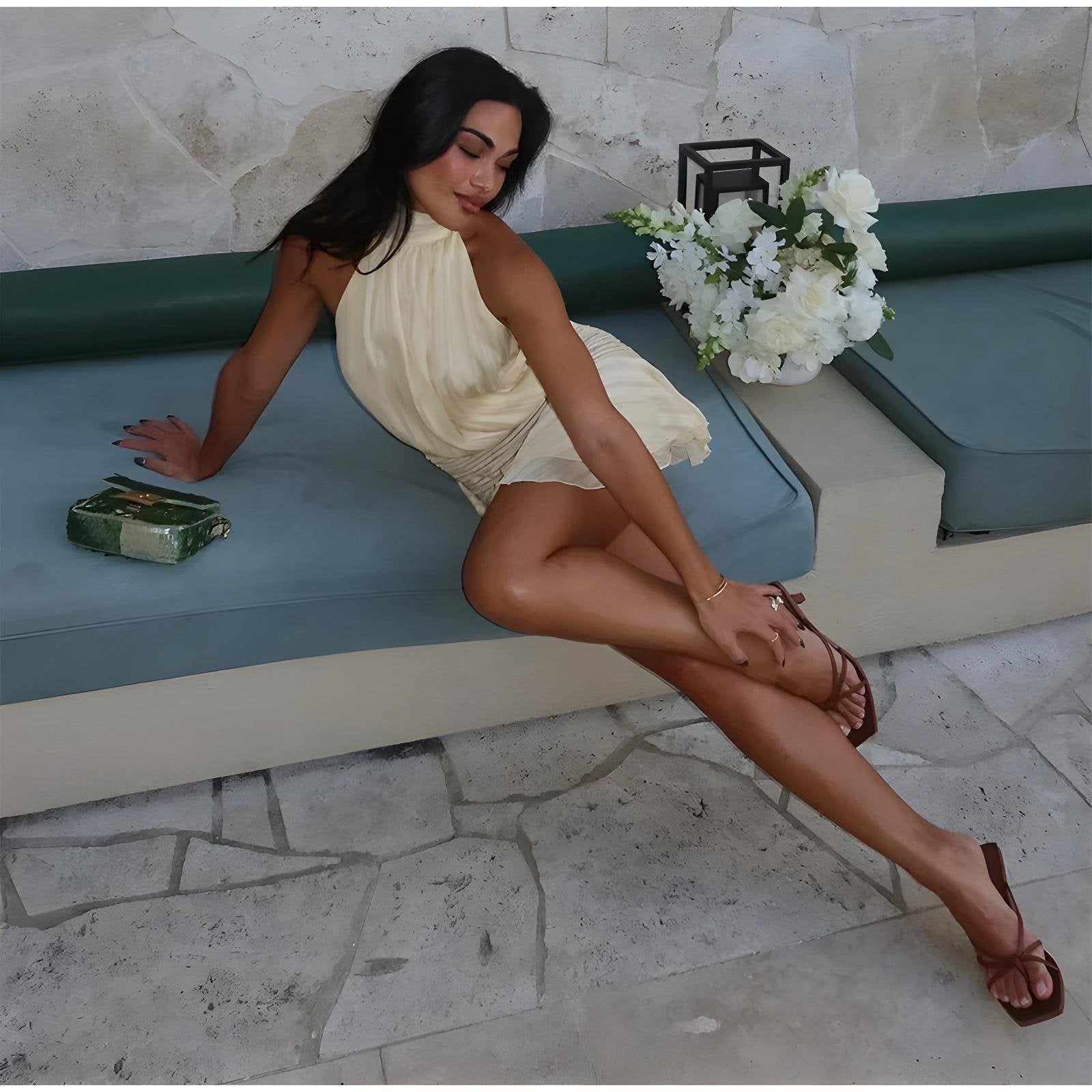 ✔️ 1 x SolvanaFlair - Halter Pleated Summer Mini Dress